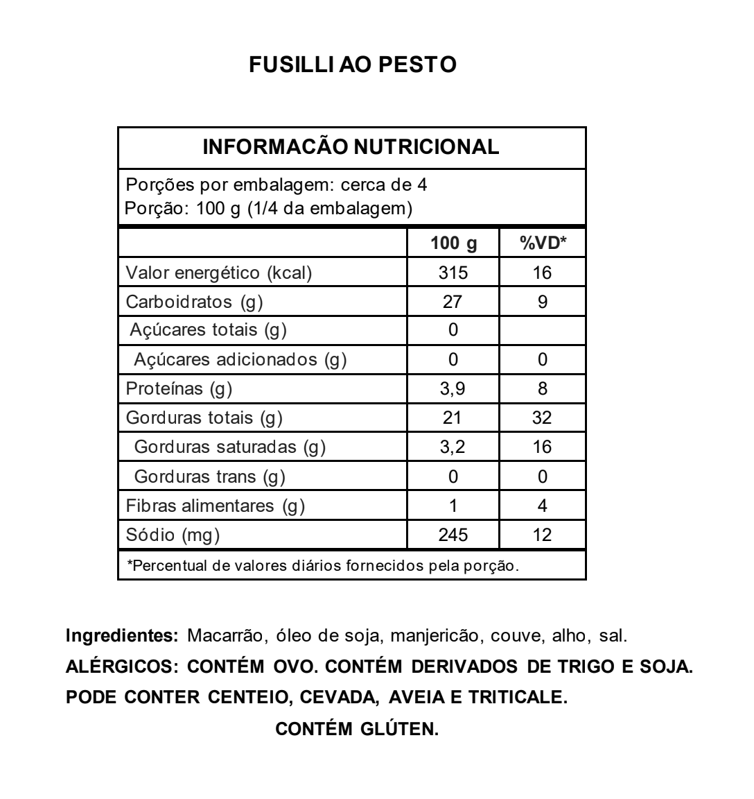 Massa fusilli ao molho pesto fresco, sabor e aromático.