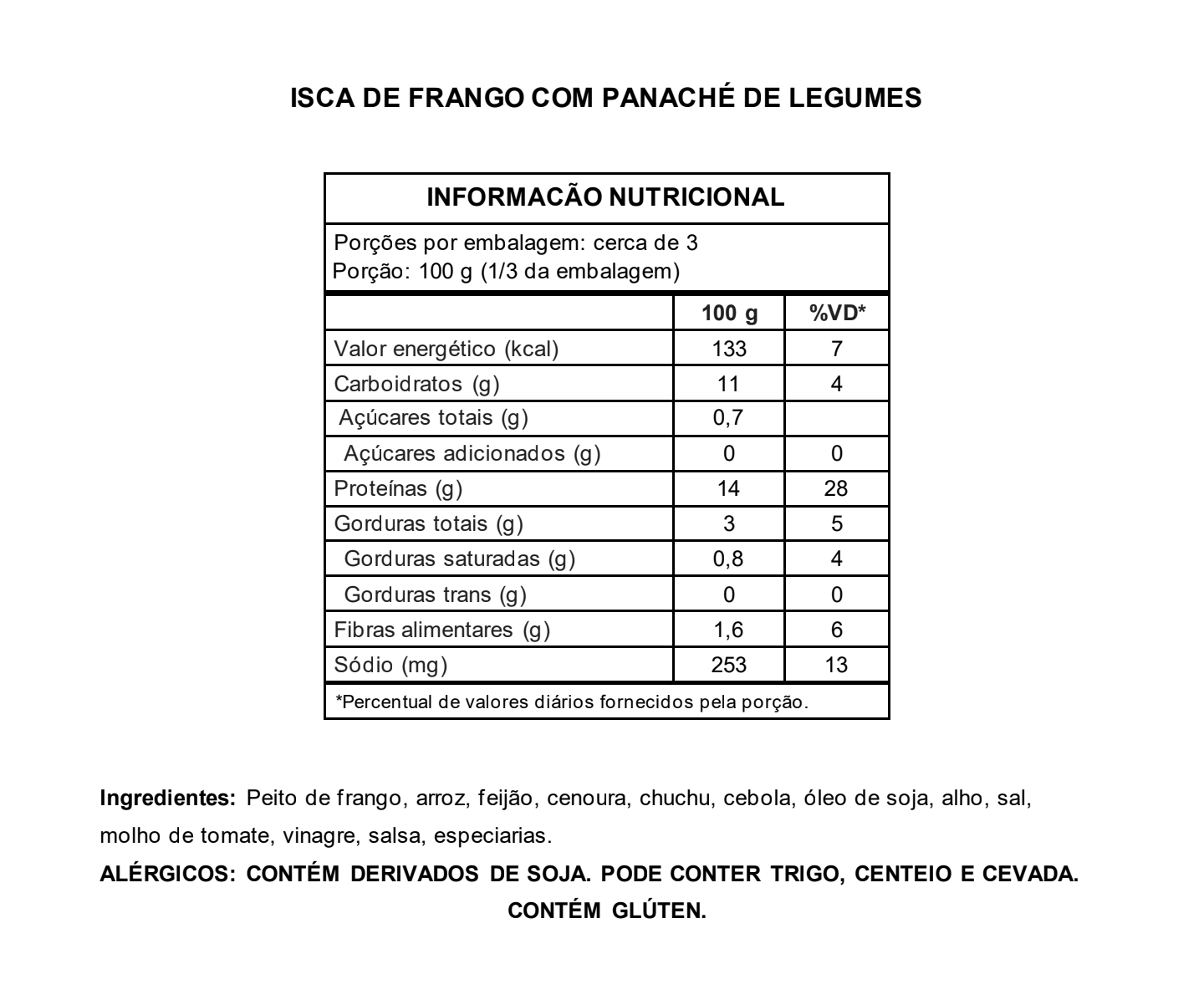 Iscas de frango douradas acompanhadas de arroz, feijão e legumes variados. Uma opção leve para o dia a dia.